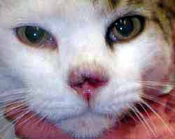 La localizzazione nasale è frequente nei gatti poco pigmentati.