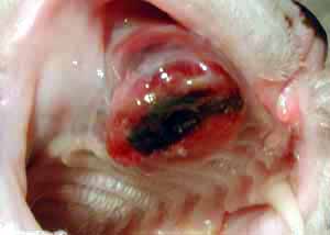 Carcinoma squamocellulare del palato in un gatto